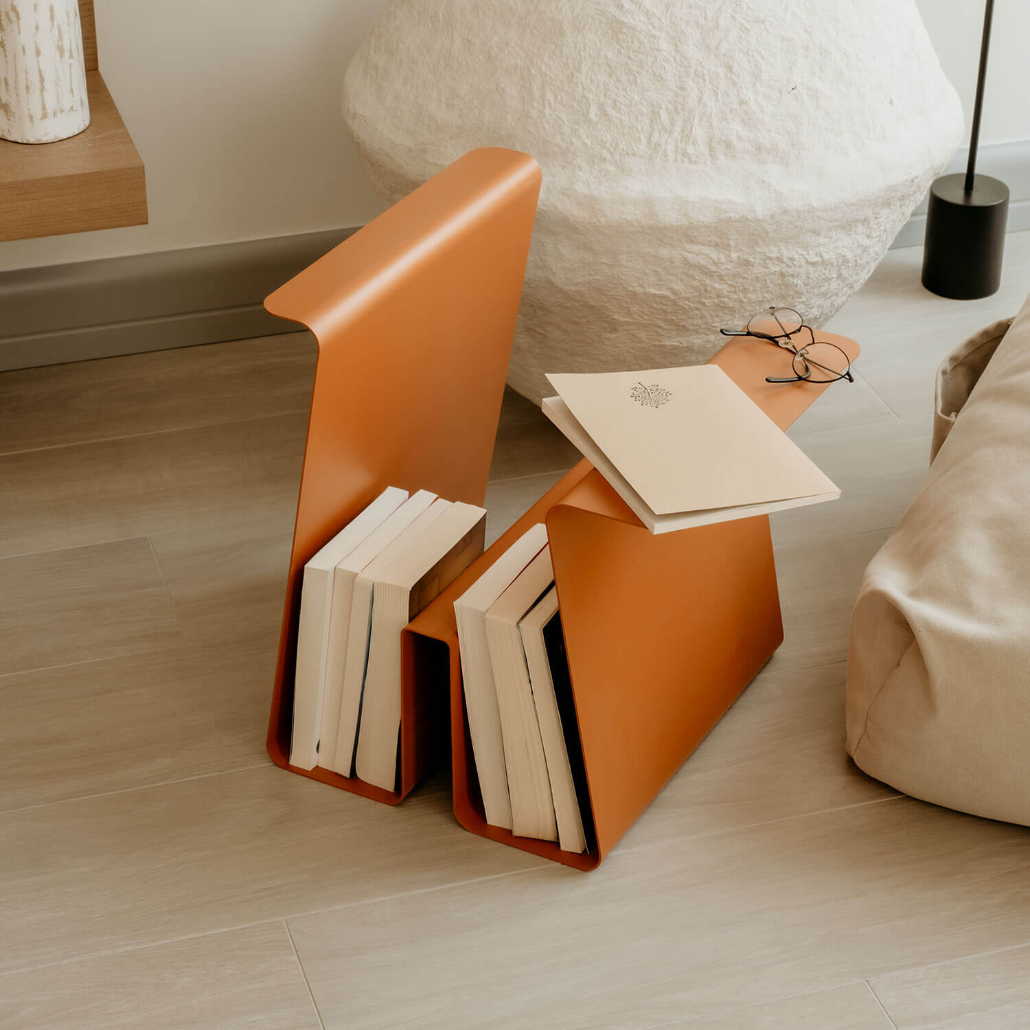 Tek bir çizgi hareketinden oluşan Line Dergilik Sehpa, özgün tasarımıyla yer aldığı ortamda farkını hissettirecektir. İki bölmeli alanı ile dergilerinizi ve kitaplarınızı saklayabilir, küçük sehpa kısmını da not defteriniz ve küçük eşyalarınız için kullanabilirsiniz.
